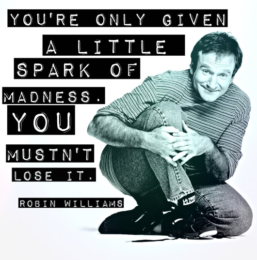 I haven’t yet cried because I’m afraid I might not stop. My fondest childhood memories involve Mork & Mindy. Growing up, I’d watch Williams’ comedic acts over and over and over, studying his timing and how he could do what he did, because to me? It was MAGIC. In fact, I can honestly say he was my earliest mentor. I learned to laugh and make others laugh, and, since home and school were living nightmares, laughter was my lifeline.